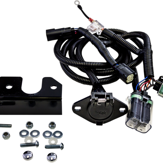 Caracteristicas: Essential for connecting wiring to a trailer of any kind Wiring is plug-and-play - no splicing Maintains the integrity of original bike/trike harness Six-pin connector allows for auxiliary power to be run to trailer Made in the U.S.A.