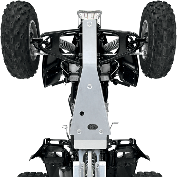Caracteristicas: Protect frame, engine cases and oil lines from rocks, debris and unwanted sudden impacts Help ATV glide over obstacles; recessed areas for the mounting bolts help eliminate bolt damage from impacts Large hole located below the engine drain plug makes for easy oil changes without removing the frame glide plate Made of .145" thickness, lightweight, high quality aluminum plate All hardware included for installation