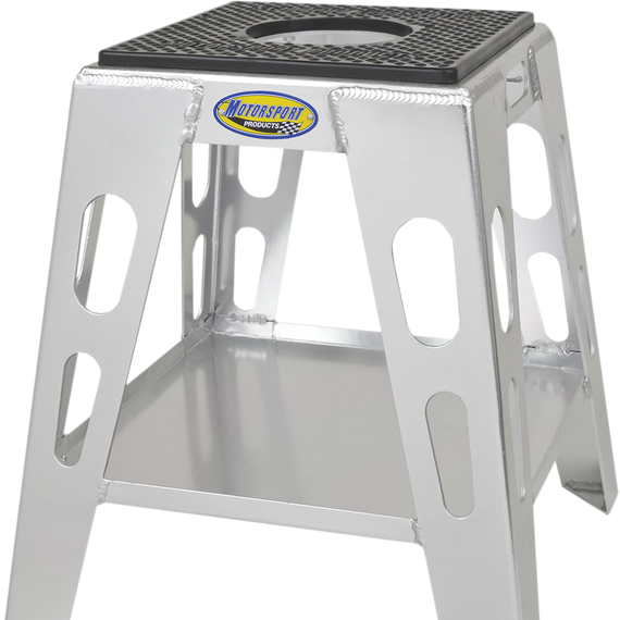 Caracteristicas: Stylish frame with machined lightening hole patterns create a very unique look Constructed with strong legs, heavy-duty top, huge lower tool and storage tray resulting in a very durable stand Surface plates welded to legs, help keep stand from sinking in soft soil Anti-slip oil- and gas-resistant rubber top with embossed logos 3.5" hole allows easy access to drain plug for oil changes