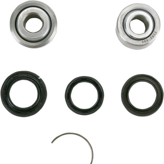 Caracteristicas: Kit contains two PTFE spherical bearings (cup bearings when used), four seals and related components Each shock kit rebuilds both ends of the shock absorber Some shock absorbers on Kawasaki and Honda models use a clevis to connect shock to the linkage. The bearing, collar and seals that are pressed into the linkage arm are included in the Pivot Works Shock Kit.
