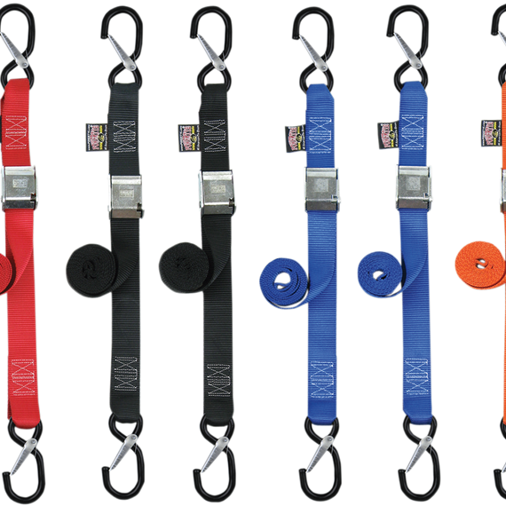 • 1-1/2" cam-buckle tie-downs with vinyl-coated safety latch hooks