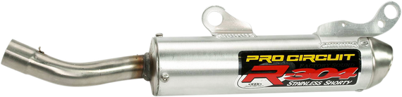 Caracteristicas: Full-race two-stroke silencer The compact design of the short aluminum canister offers optimum performance gains and is recommended for closed-course racing only Hex head screws are used to secure the inlet cap and can be removed easily for quick re-packing of the silencer 304 stainless steel intake tube Double-walled mounting bracket(s) Tig and mig welded for strength and durability E-Glass internal packing for maximum packing life Made in the USA