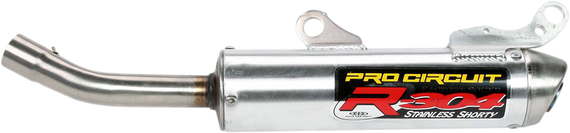 Caracteristicas: Full-race two-stroke silencer The compact design of the short aluminum canister offers optimum performance gains and is recommended for closed-course racing only Hex head screws are used to secure the inlet cap and can be removed easily for quick re-packing of the silencer 304 stainless steel intake tube Double-walled mounting bracket(s) Tig and mig welded for strength and durability E-Glass internal packing for maximum packing life Made in the USA