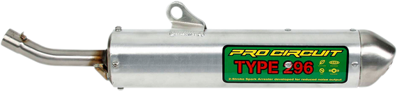 Caracteristicas: The Type 296 Silencer is a quiet spark arrestor that should be used when riding in noise sensitive areas or any National Forest U.S. Forest Service approved and will reduce your bike's noise level at or near 96dB on most models Internal metal baffle, chambers, and sound absorbing materials for a muffled sound Constructed of aluminum and stainless steel Double-walled mounting bracket(s) Longer canister design keeps noise levels to a minimum No loss of motor performance Made in the USA