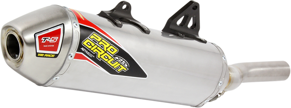 Caracteristicas: Mechanical silencer that comes with an internal perf-core surrounded by packing The T-5 Stainless Slip-On Silencer is designed for a rider looking for an inexpensive, easy-to-install, lightweight performance silencer that can bolt right onto their stock head pipe Aluminum muffler brackets Aluminum canister Stainless steel mid pipe and end-cap TIG welded Asymmetric muffler design Removable USFS approved spark arrestor and optional insert for closed course racing