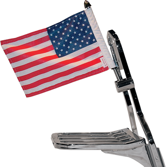 Caracteristicas: Polished 304 stainless steel flag mount bolts directly to the bars on most Softails, Sportsters, and Dynas Mount, as well as pole, can be easily detached via a small setscrew Includes an American flag Other flags also available; sold separately Made in the U.S.A.