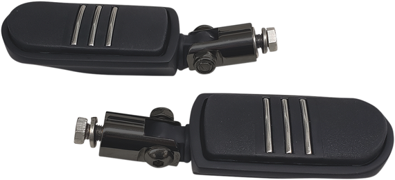 Caracteristicas: Matte black pegs with anti-vibration rubber inlays Folding stainless steel clevis mounts with stainless steel 3/8" mounting bolts
