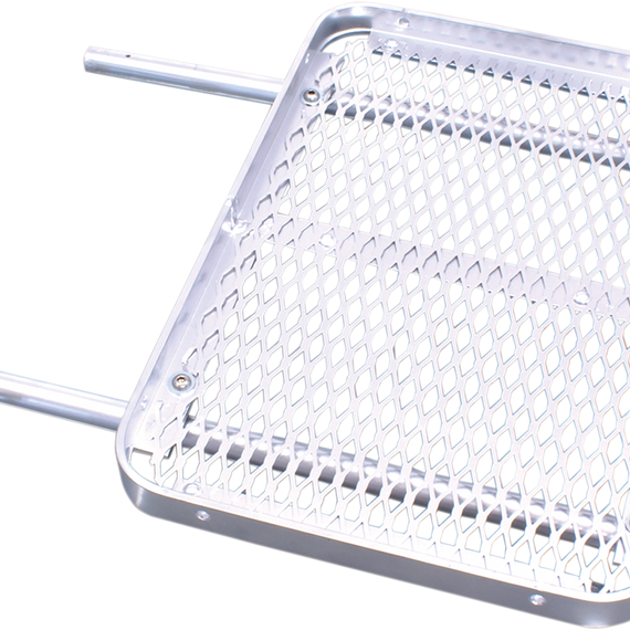 Caracteristicas: Made from strong aircraft quality aluminum Powder coated in a silver finish Weighs 3 pounds Removing the rack is as easy as pulling two pins and sliding it out of the receiver brackets