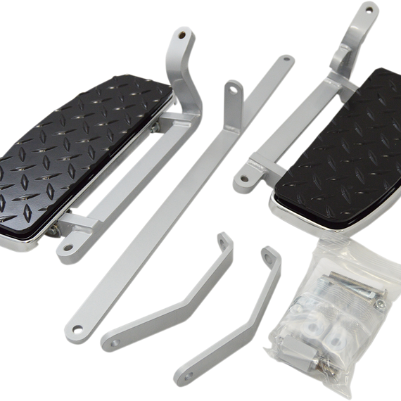 Caracteristicas: CNC-machined from billet aircraft quality aluminum and then triple chrome plated High-quality, neoprene rubber inlays reduce fatigue Boards can set in three positions (stock, 3/4" higher than stock and 1-1/2" higher than stock) and are adjustable up and down in a vertical range of motion