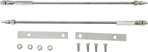 Caracteristicas: Designed to use existing trunk holes Doesn’t interfere with opening the trunk or block brake lights The two poles are topped with chrome finials and will accommodate all flags up to 10.5 tall Mounts easily, and won’t bend or flex, while remaining sturdy at highway speeds Include clips to keep flags in place at the top of the poles Made from stainless steel and then hand polished to a brilliant finish. Won’t ever rust or tarnish and will last a lifetime Made in the U.S.A. Flags not included