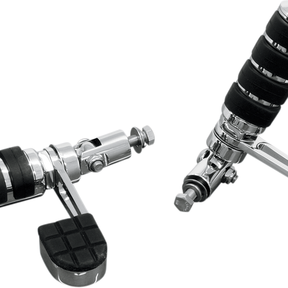 Caracteristicas: Steel and aluminum construction Unique locking setscrew system allows rider to adjust the peg angle 3/8" mounting bolts work with Rivco and most other mounts Stainless steel hardware included Made in the U.S.A.