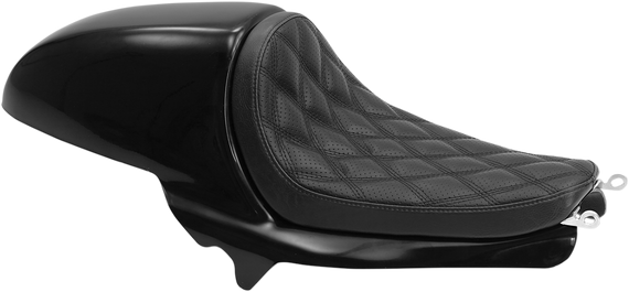 Caracteristicas: Seat baseplate is marine-grade fiberglass Controlled density polyurethane foam construction Black distressed vinyl cover RSD metal logo Direct bolt-on seat for use with RDS Cafe Tail Section (PART #0520-1355) Completes the RSD Cafe Sportster package of products Ergonomic shape keeps the rider seated comfortably and firmly Made in the U.S.A.