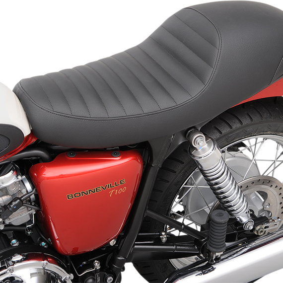 Caracteristicas: Saddlemen’s unique take on the classic café racing seat Marine-grade, element resistant covers are durable, yet supple, so you can be sure your seat lasts and lasts Simple bolt-on installation – swap a couple of brackets over - nothing else to buy or modify Seating area is shaped to be comfortable making sure you can ride in style all-day-long Progressive density foam with a GEL top layer supports the rider unlike the rock-hard seats offered by other builders Seat and rear hump shape carefully sculpted to complement the motorcycles’ lines and fender shapes Made in the U.S.A.