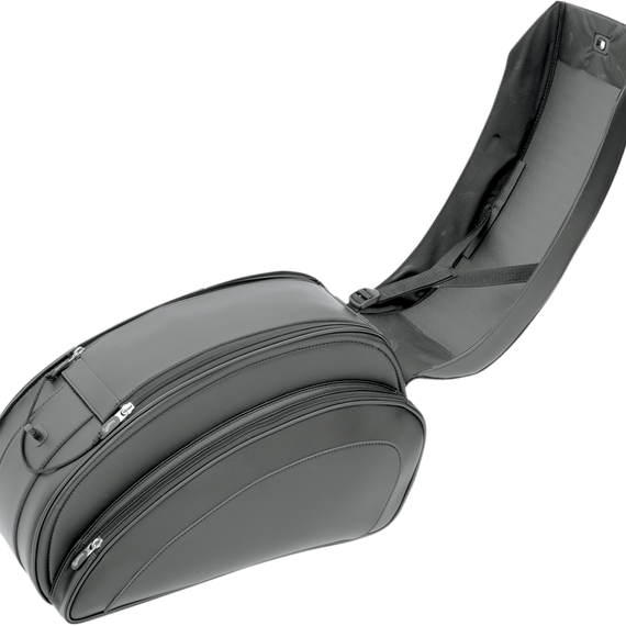 Caracteristicas: Distinctively styled saddlebags look great on any style motorcycle, with a layered lid and spacious zippered side pouches that flow together to create truly handsome luggage Rugged SaddleHyde™ construction bags with strong internal reinforcement to hold their shape, with lids that pivot forward when opening to provide excellent cargo access Contents stay clean and dry with zippered openings covered by weather flaps fitted with 1/4-turn hasps that accept mini padlocks for security Detachable and fully adjustable yoke system allows easy installation and combines perfectly with Saddlemen's saddlebag supports You can add a Saddlemen quick-release kit with supports to change from a throw-over saddlebag set to a rigidly mounted set that can be removed from your bike in seconds Throw-Over style fits most motorcycles Measure: 20-1/4" L x 9" W x 12-3/4" H