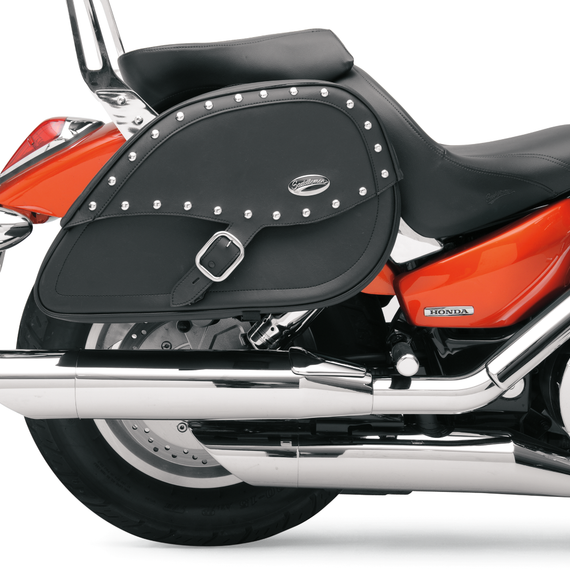 Caracteristicas: Pre-fitted and sized correctly for rigid mounting to specific bikes Made of rugged leather-grain, weather-resistant Saddlehyde™ with a hard backside Drifter features smooth, clean and uncluttered styling; Desperado features chrome studs Streamlined shape allows stock turn signal locations to be used; turn signal relocator bracket included for harder-to-fit bikes All hardware and chrome saddlebag supports included for rigid mounting; can upgrade to Saddlemen™ S4 Quick Disconnect Docking Post Kit (sold separately)