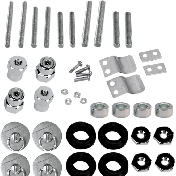 Caracteristicas: Replace fender strut bolts Designed to attach/detach all Saddlemen saddlebags and any rigid-back aftermarket and OEM saddlebags with a twist of the QTL (Quarter Turn Locking) fasteners Each kit includes four docking posts with fasteners, spacers, saddlebag grommets, support clips, nuts/bolts/fastener and instructions Part numbers 3501-0337 and 3501-0338 Requires turn signals to be relocated.