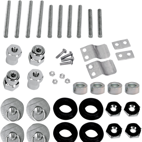Caracteristicas: Replace fender strut bolts Designed to attach/detach all Saddlemen saddlebags and any rigid-back aftermarket and OEM saddlebags with a twist of the QTL (Quarter Turn Locking) fasteners Each kit includes four docking posts with fasteners, spacers, saddlebag grommets, support clips, nuts/bolts/fastener and instructions Part numbers 3501-0337 and 3501-0338 Requires turn signals to be relocated.