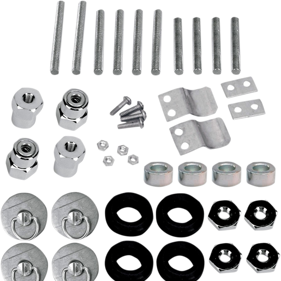 • Each kit includes four docking posts with fasteners, spacers, saddlebag grommets, support clips, nuts/bolts/fastener and instructions