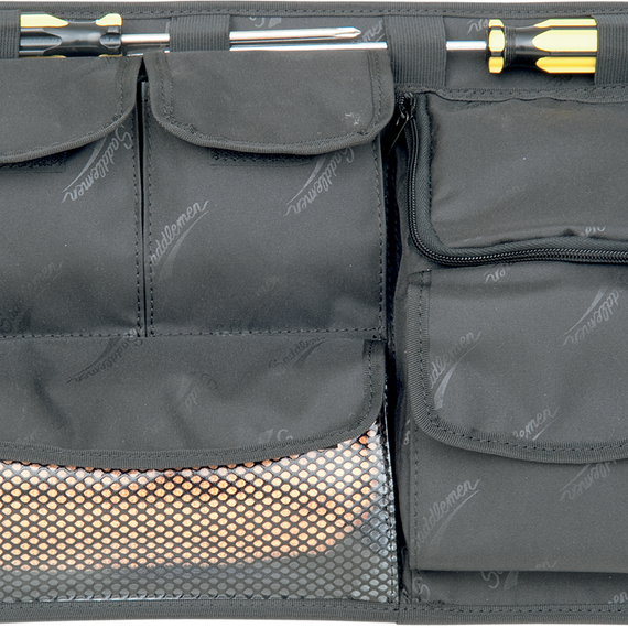 Caracteristicas: Mounts easily into saddlebags' lids with included hook-and-loop fastener strips Easy removal; just lift up on the edge and peel out of bag Each organizer features solid or mesh storage pockets that let you separate your gear Pouches are shaped to hold tools, electronics or other convenience items Each organizer is designed thin to give you more space in the saddlebag