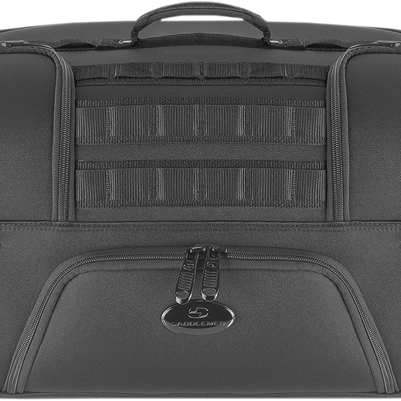 Caracteristicas: Designed to fit perfectly between the rider and the tour pack Constructed of UV-, water and weather resistant 1200D textile Multiple oversized mounting rings around the bag overcome unique mounting challenges Three external pockets provide extra storage organization Integrated MOLLE attachment mounting option Strong, nylon meshing zipper teeth with black sliders equipped with large pulls for easy use with a gloved hand Reflective rain cover with locking cinch cord included Holds shape even when empty