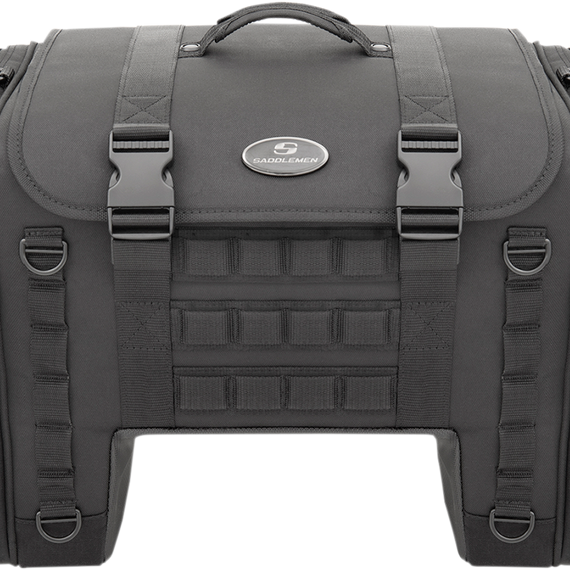 Caracteristicas: Strong, nylon meshing zipper teeth with black sliders equipped with large pulls for easy use with a gloved hand Oversized mounting rings around the bag help overcome unique mounting challenges Tech organizer is perfect for smartphones, digital cameras or MP3 players Designed to fit perfectly between the rider and the tour pack Constructed of UV-, water- and weather-resistant 1200D Reflective rain cover with locking cinch cord included Integrated MOLLE attachment mounting option Dimensions: 25” W x 13.5” H x 11” D Holds shape even when empty Multiple external pockets