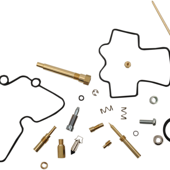 Caracteristicas: Includes main and pilot jets, jet needle sets, float valves, float chamber gaskets and O-rings (jets included in each kit are for common sizes; according to riding conditions and riding preference, different size jets may be used) Award-winning rubber-top float valves are made using highest quality rubber and a plated body for resistance to harsh gas, ethanol and methanol Each complete kit rebuilds OEM carburetors to achieve optimum performance Idle screw sets, pilot screw sets and air screw sets also included if applicable