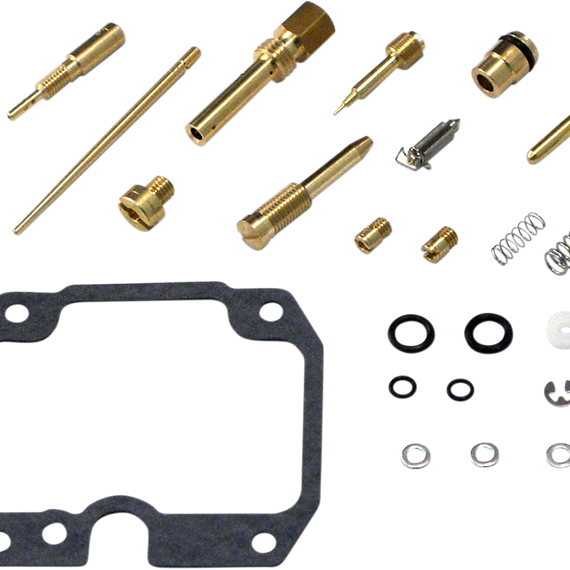 Caracteristicas: Includes main and pilot jets, jet needle sets, float valves, float chamber gaskets and O-rings (jets included in each kit are for common sizes; according to riding conditions and riding preference, different size jets may be used) Award-winning rubber-top float valves are made using highest quality rubber and a plated body for resistance to harsh gas, ethanol and methanol Each complete kit rebuilds OEM carburetors to achieve optimum performance Idle screw sets, pilot screw sets and air screw sets also included if applicable