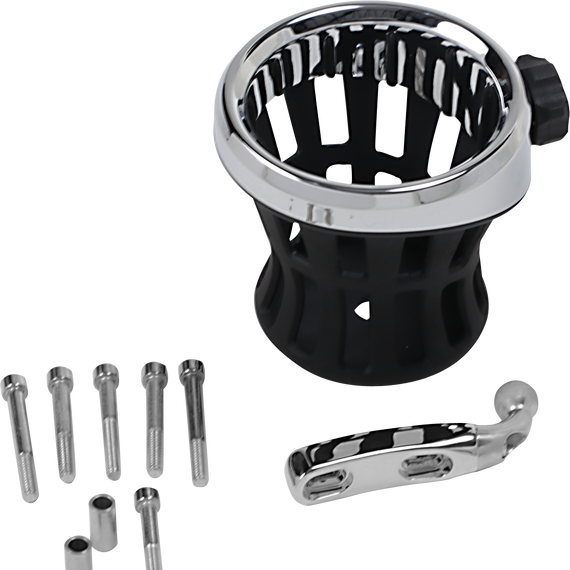 Caracteristicas: Hold virtually any can, bottle or cup securely with a contoured rubber net Infinite adjustment with a Ciro ball-mount design Rubber-lined ring keeps your can or bottle from vibrating Soft rubber net won't scratch if it comes in contact with paint Additional mounting options available, see related products