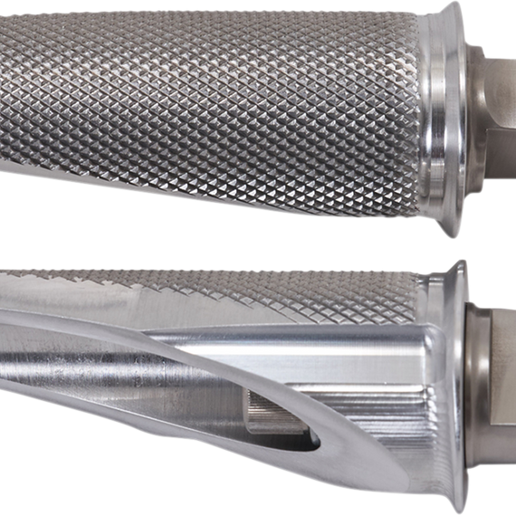 Caracteristicas: CNC machined out of 6061 aluminum Racing-inspired design, these male mount footpegs were made for the street or track With stainless steel clevis, these footpegs are adjustable for any angle Made in the U.S.A.
