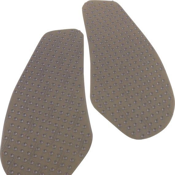 Caracteristicas: Make gripping your ride incredibly easy for increased bike control with more contact between bike and rider Provides more lower body grip and less upper body stress Ultra-clear proprietary elastomer material means paint and graphic remain visible through traction pads Non-abrasive material; designed to wear down and be replaced like a tire Will not wear down leathers as compared to grip tape Pre-molded with rounded edges that resist peeling Super-strong 3M™ peel-and-stick adhesive Made in the U.S.A.