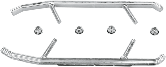 Caracteristicas: The first major breakthrough in wear bar technology since the 1950s Unique corner-carving hourglass design yields better control at speed with no increased steering effort Better tracking on trails - hourglass wear bar shape catches snow from ski sides to make steering more positive Average of 1' - 2' tighter turning radius in soft snow conditions 20% lighter than conventional 1/2" diameter round wear bars Zinc-plated for corrosion resistance Lifetime wear rate is nearly equal to current round and square wear bar types Manufactured by Stud Boy Designed and tested by USI Some models require drilling extra holes in the skis.