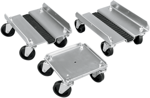 Caracteristicas: Tough, lightweight construction Each caddy features four heavy-duty, 2-3/8" casters with extra heavy duty 2-1/2" plastic wheels Includes 2 10" by length caddies and 1 6-1/2" by length caddy