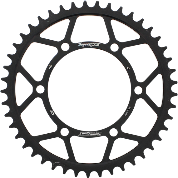 Caracteristicas: Developed on the race track to give longer system life and high performance for street and off-road applications Using CAD designed and CNC-Laser cutting to ensure an exact fit on the wheel Made to Supersprox high quality standards and including out exclusive (2XZINK) anti corrosion black finish One of the lightest steel sprockets on the market Factory styling for a great look