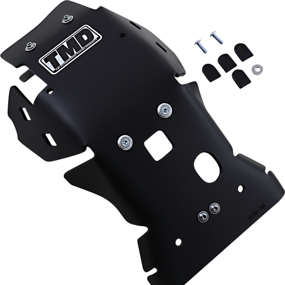 Caracteristicas: Composite impact absorbing plastic with silicone additive to reduce friction Built for rough MX, off-road and enduro riders who need maximum racing protection TMD skid plates are designed to allow maximum frame flex Precision-formed (not molded) with no welds to crack or creak Up to 45% lighter than aluminum skid plates and reduced engine bounced to the rider 35% lighter than alloy plates All hardware is 100% replaceable Covers frame rails, water pump and ignition cover Reduces noise and vibration Engineered to provide the best overall coverage