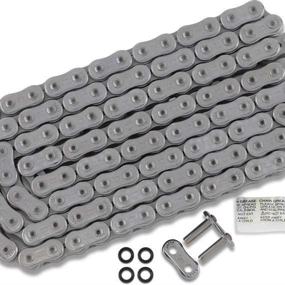 Caracteristicas: Precise forging process leads to a stiff chain for better acceleration and more efficient engine work Lightening hole allows for a lighter chain without compromising strength while removing mud and dispersing heat more efficiently Improvement in transmission efficiency Special pin with holes in both ends allow the chain to be lightened Edge-cut inner plate reduces friction and allows for smooth engagement with sprocket