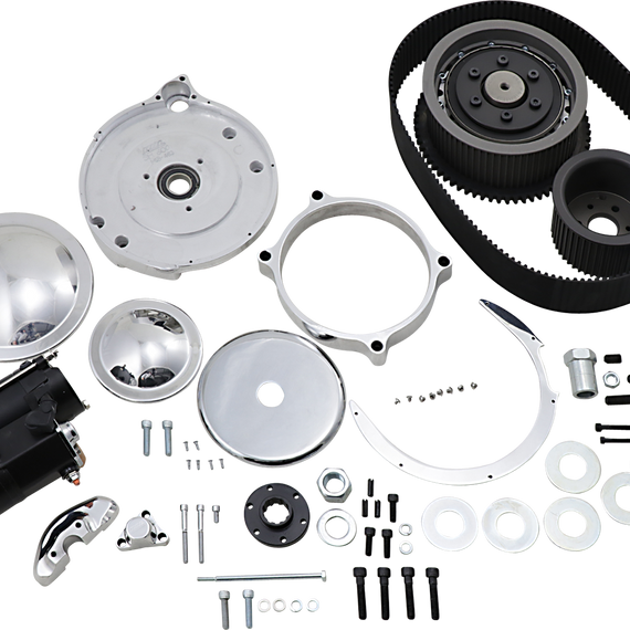 Caracteristicas: Designed for electric start applications Kit includes 141-tooth drive belt, motor plate, clutch hub, starter pinion gear assembly, compete set of clutch plates, ball-bearing pressure plate and hardware Rear 72/front 47 pulley combination Made in the U.S.A. Utilizes an '89-'06 style starter (included) Not for rotary top transmissions