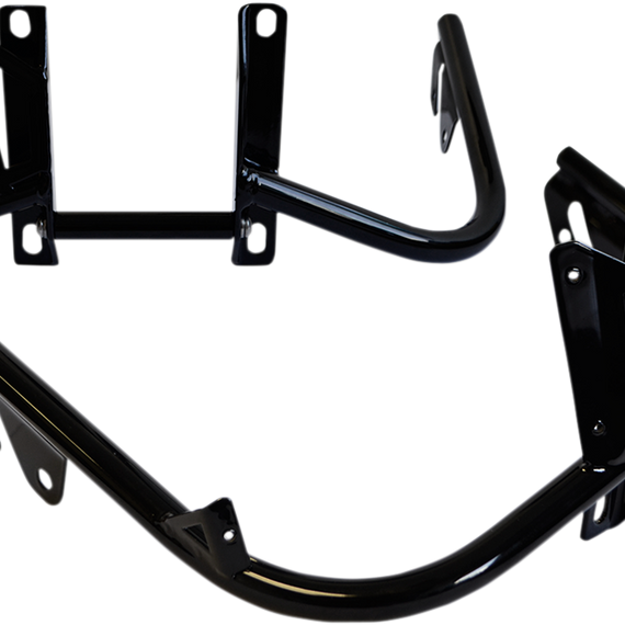 Caracteristicas: Mild steel with a gloss black powder-coated finish Eliminates the need for factory engine guard to give the bike a nice clean look Mounts between the inner and outer fairings Includes amp mounts for aftermarket stereo systems Made in the U.S.A.