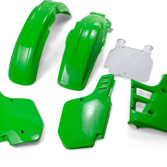 • Body kit includes front and rear fender, radiator covers, side panels and front number plate; OEM matches stock bike color