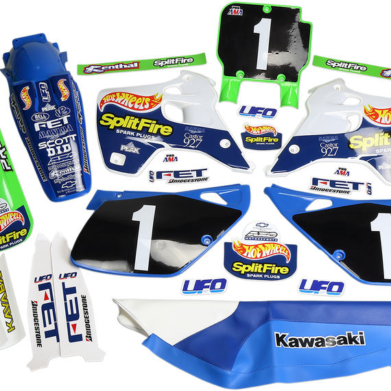Caracteristicas: Change up the look of your ride Each kit includes front fender, rear fender, radiator cover, side panels, front number plate, seat cover and graphics
