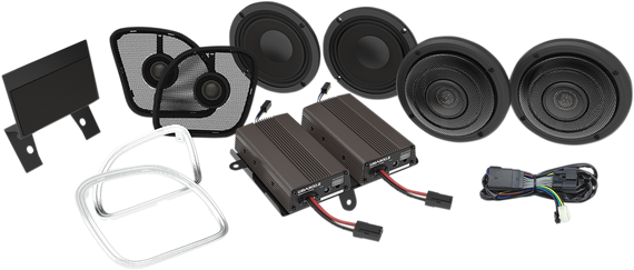 • System is expandable to easily add additional amplifier for fairing lowers or saddlebag lids