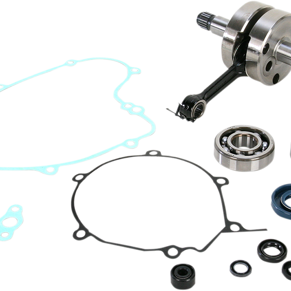 Caracteristicas: Include crankshaft, top end bearing, premium main bearings and a complete bottom end gasket set that includes all seals and gaskets needed to do the job Only one part number to stock and order Crankshafts are factory assembled and precision trued to OEM specifications Double-forged Wiseco connecting rods maintain superior dimensional consistency through improved grain flow Shot-peening eliminates residual stresses and smoothly blends the rod forging surfaces Corrosion-resistant surface treatment Top and bottom end rod bores case hardened to 58-62 RC to optimize bearing running surface Crank pin bearing radial running clearance is optimized to ensure maximum performance Precision honing ensures ultra round bearing surface Precision engineered oiling slots maximize rod strength and bearing life Double-drilled small ends provide the piston pin with extra lubrication and cooling, reducing distortion of top end due to thermal transfer from the piston Silver-coated bronze phosphor thrust washers, with dimpled design to increase oil retention and reduce friction between rod and washer interface Crank pin bearings are manufactured from the highest quality hot rolled steel; case-hardened to 58-62 RC Caged needle roller bearings provide the highest possible rpm Precision machined crank webs