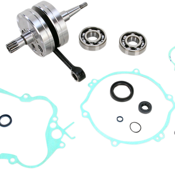 Caracteristicas: Include crankshaft, top end bearing, premium main bearings and a complete bottom end gasket set that includes all seals and gaskets needed to do the job Only one part number to stock and order Crankshafts are factory assembled and precision trued to OEM specifications Double-forged Wiseco connecting rods maintain superior dimensional consistency through improved grain flow Shot-peening eliminates residual stresses and smoothly blends the rod forging surfaces Corrosion-resistant surface treatment Top and bottom end rod bores case hardened to 58-62 RC to optimize bearing running surface Crank pin bearing radial running clearance is optimized to ensure maximum performance Precision honing ensures ultra round bearing surface Precision engineered oiling slots maximize rod strength and bearing life Double-drilled small ends provide the piston pin with extra lubrication and cooling, reducing distortion of top end due to thermal transfer from the piston Silver-coated bronze phosphor thrust washers, with dimpled design to increase oil retention and reduce friction between rod and washer interface Crank pin bearings are manufactured from the highest quality hot rolled steel; case-hardened to 58-62 RC Caged needle roller bearings provide the highest possible rpm Precision machined crank webs