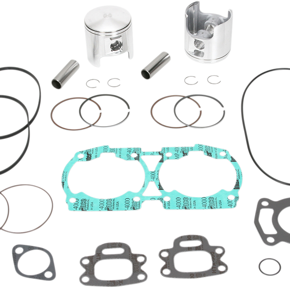 Caracteristicas: Most Wiseco 2-cycle pistons are forged from high-silicone bar stock Greater strength and lower expansion at high temperatures Complete piston kits include High-Performance forged pistons, rings, wrist pins, circlips and top-end gasket kit for one complete engine All Wiseco High-Performance pistons are priced with rings, wrist pins and circlips Wiseco ring types are not interchangeable (i.e., CD is not interchangeable with LC) and fit only Wiseco pistons WARNING: Wiseco pistons can be fitted only with Wiseco rings.