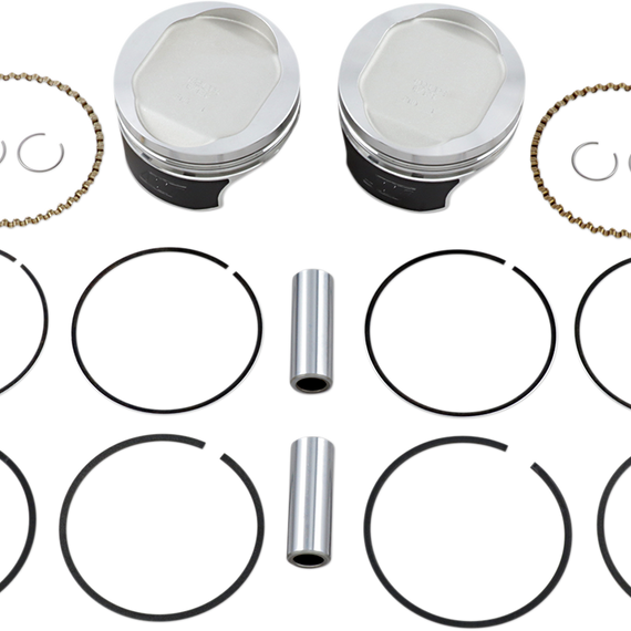 Caracteristicas: Forged piston crown with generous valve pockets for big valves and cams Precision-fit rings selected for each application for ultimate sealing Force-fed pin oiling provides enhanced lubrication of the piston pin Pressure seal groove reduces ring lifting and power loss ArmorGlide® skirt coating reduces friction, providing quieter operation and improving scuff resistance Valued-packaged with two pistons, rings, piston pins and circlips Made in the U.S.A
