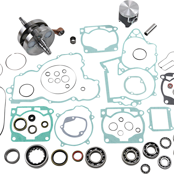 Caracteristicas: Complete engine rebuild kit Includes crankshaft, piston kit, complete engine gasket kit with oil seals, main bearings and seals, water pump rebuild kit, transmission bearings, countershaft bushing/seal kit, wrist pin bearing, cam chain and counter balancer bearings when applicable