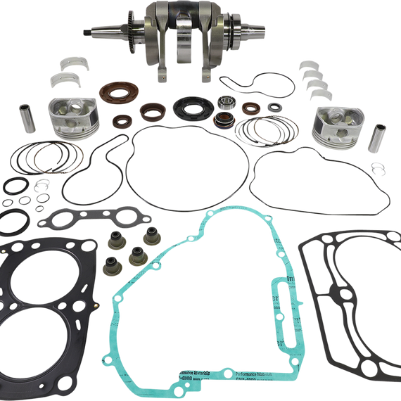 Caracteristicas: Convenient one-stop shop in a box; nearly all components required for a complete and professional rebuild Vertex piston kit (standard compression piston, rings, pin and clips) Hot Rods heavy-duty crank (stock stroke Æ’?? includes wrist pin bearing for two strokes) Hot Rods main bearing/seal kit Hot Rods transmission bearing kit (includes transmission bearings, output shaft collar and sprocket lock washer) Hot Rods counter balancer bearing kit Hot Rods water pump bearing and seal kit Vertex complete gaskets kit, including seals and O-ring kit (covers top and bottom)