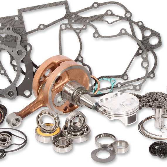 Caracteristicas: Convenient one-stop shop in a box; nearly all components required for a complete and professional rebuild Vertex piston kit (standard compression piston, rings, pin and clips) Hot Rods heavy-duty crank (stock stroke Æ’?? includes wrist pin bearing for two strokes) Hot Rods main bearing/seal kit Hot Rods transmission bearing kit (includes transmission bearings, output shaft collar and sprocket lock washer) Hot Rods counter balancer bearing kit Hot Rods water pump bearing and seal kit Vertex complete gaskets kit, including seals and O-ring kit (covers top and bottom)