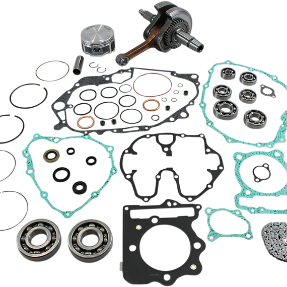 Caracteristicas: Convenient one-stop shop in a box; nearly all components required for a complete and professional rebuild Vertex piston kit (standard compression piston, rings, pin and clips) Hot Rods heavy-duty crank (stock stroke Æ’?? includes wrist pin bearing for two strokes) Hot Rods main bearing/seal kit Hot Rods transmission bearing kit (includes transmission bearings, output shaft collar and sprocket lock washer) Hot Rods counter balancer bearing kit Hot Rods water pump bearing and seal kit Vertex complete gaskets kit, including seals and O-ring kit (covers top and bottom)