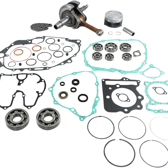 Caracteristicas: Convenient one-stop shop in a box; nearly all components required for a complete and professional rebuild Vertex piston kit (standard compression piston, rings, pin and clips) Hot Rods heavy-duty crank (stock stroke Æ’?? includes wrist pin bearing for two strokes) Hot Rods main bearing/seal kit Hot Rods transmission bearing kit (includes transmission bearings, output shaft collar and sprocket lock washer) Hot Rods counter balancer bearing kit Hot Rods water pump bearing and seal kit Vertex complete gaskets kit, including seals and O-ring kit (covers top and bottom)
