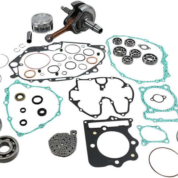 Caracteristicas: Convenient one-stop shop in a box; nearly all components required for a complete and professional rebuild Vertex piston kit (standard compression piston, rings, pin and clips) Hot Rods heavy-duty crank (stock stroke Æ’?? includes wrist pin bearing for two strokes) Hot Rods main bearing/seal kit Hot Rods transmission bearing kit (includes transmission bearings, output shaft collar and sprocket lock washer) Hot Rods counter balancer bearing kit Hot Rods water pump bearing and seal kit Vertex complete gaskets kit, including seals and O-ring kit (covers top and bottom)